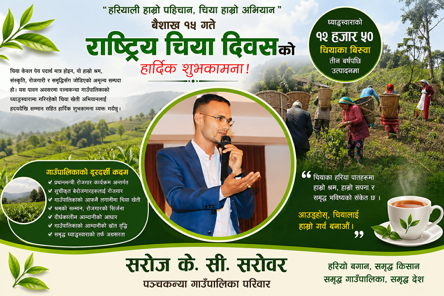 रोजगार सिर्जना, आत्मनिर्भरता र हरियाली समृद्धिको आधार : पञ्चकन्या गाउँपालिकाको घ्याङस्वारा चिया खेतीको प्रेरणादायी