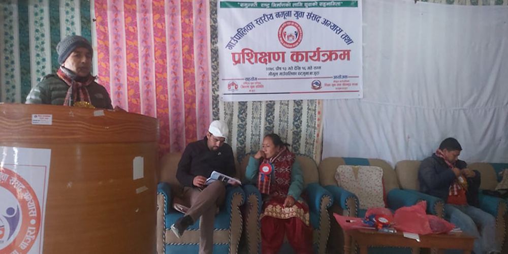 युवाको क्षमता वृद्धि तथा सशक्तीकरण र नमुना युवा संसद्द्वारा सत्ता सञ्चालनको अभ्यासबारे ४ दिनसम्म सहभागीलाई प्रशिक्षण दिइने राष्ट्रिय युवा परिषद् जिल्ला युवा समिति बाजुराका अध्यक्ष कृष्ण थापाले बताए । कार्यक्रममा युवालाई संसदीय अभ्यास, मूल्य–मान्यता, मर्यादा र संसद् सञ्चालनको प्रक्रियाबारे जानकारी गराइनेछ । युवाको नेतृत्व विकासका लागि भूमिका निर्वाह गर्ने गरी युवा संसद् स्थापना र अभ्यास कार्यक्रमबाट राष्ट्रपतिदेखि प्रधानमन्त्री, सभामुख, उपसभामुख, विभिन्न मन्त्री, प्रमुख सचेतक नियुक्तिका लागि नमुना निर्वाचन हुने कार्यक्रमका प्रशिक्षक मदनराज जैशीले जानकारी दिए ।