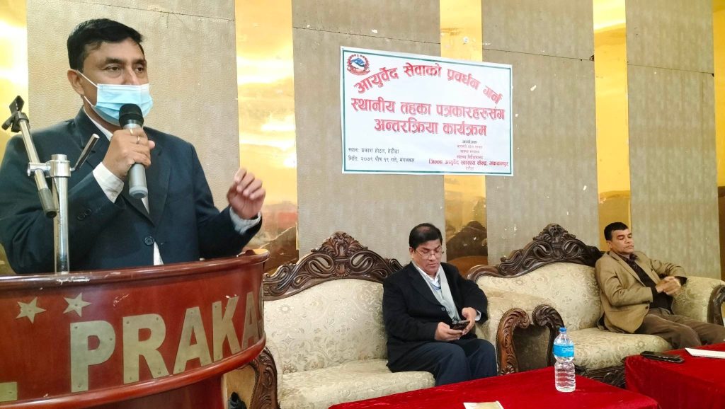 हेटौंडा उपमहानगरपालिका वडा नम्बर–२ मा रहेको आयुर्वेद स्वास्थ्य केन्द्र मकवानपुरले सेवाको प्रवर्धनका विषयमा १९ पुसमा मकवानपुरका पत्रकारसँग अन्तरक्रिया गर्दै यसका विषयमा जानकराी गराएको हो । केन्द्रमा धेरै खालका उपचार गरिने र औषधि समेत वितरण हुँदै आएको केन्द्रका प्रमुख तथा आयुरर्वेद चिकित्सक ललिता पाण्डेले बताए । पहिलेको तुलनामा विरामीहरुमा पनि चासो बढेको र सेवा पनि प्रभावकारी भएको बताए ।