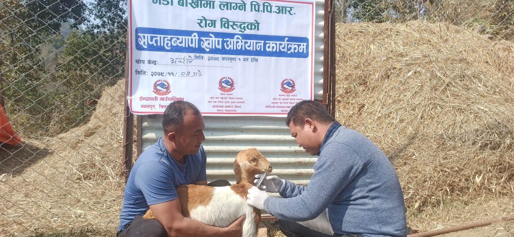 फागुन १ गतेदेखि सुरु भएको सप्ताहव्यापी खोप अभियानअन्तर्गत प्रदेशका १३ वटा जिल्लाका किसानले पालेका भेडाबाख्रालाई पीपीआर रोगविरुद्ध खोप लगाइएको अधिकारीले जानकारी दिए । खोप कार्यक्रम ४ सय २५ जना भ्याक्सिनेटर र १ हजार २ सय ४४ खोप केन्द्रबाट सञ्चालन भएको उनले बताए । अभियान बाहेक अन्य समयमा समेत मन्त्रालयले भेडाबाख्रालाई उक्त खोप लगाउदै आएको छ ।
