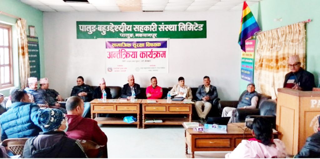 मकवानपुर थाहा नगरपालिकाको थानाबजारमा सामाजिक सुरक्षा कोष सम्बन्धि एकदिने अन्तरक्रिया तथा छलफल कार्यक्रम ८ फागुनमा भएको छ । सामाजिक सुरक्षा कोष बबरमहल काठमाण्डौंको समन्वयमा भएको कार्यक्रम पालुङ बहुउद्देश्यीय सहकारी संस्थाले आयोजना गरेको हो । छलफलमा थाहानगर क्षेत्रमा रहेका उत्पादन मुलक उद्योग, पर्यटनसंग सम्बन्धित व्यवसाय, संघस.स्था तथा सहकारीका पदाअधिकारी र प्रतिनीधिहरुको उपस्थिती रहेको थियो ।