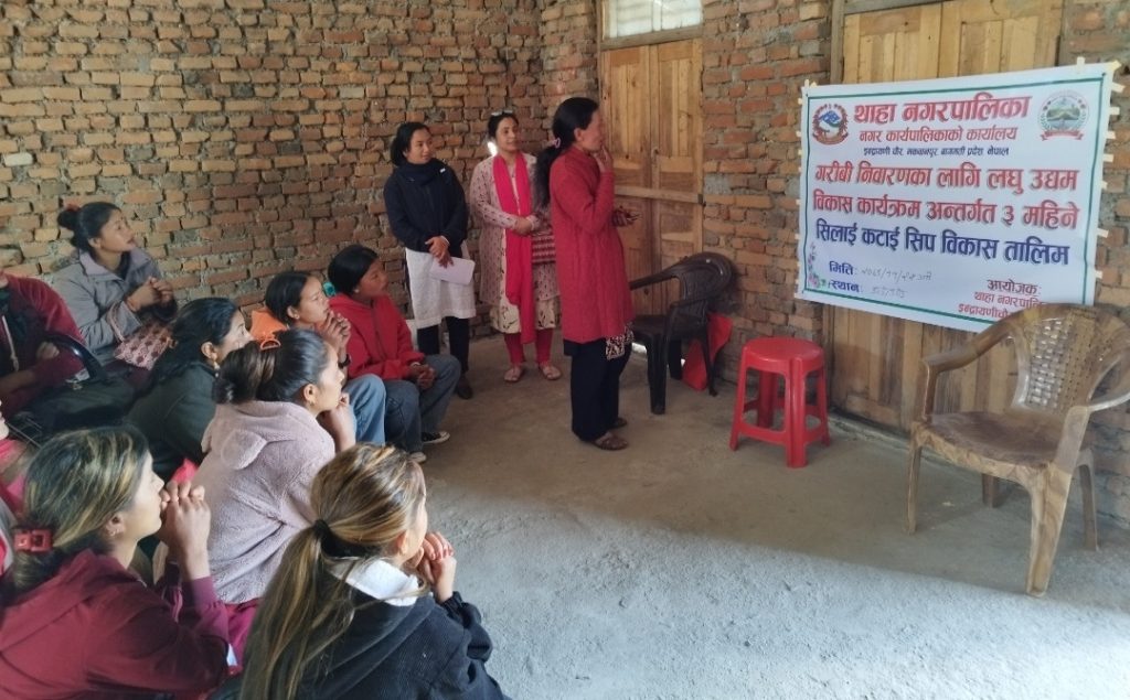 विपन्न वर्गका महिलाहरुले सिलाइ कटाइसम्बन्धी सीप सिकेर उद्यमी बन्ने अठाेट गरेपछि थाहा-३ मा साेही तालिम शुरु गरिएकाे छ । सात दिन लामाे उद्यम विकास तालिमकाे अन्त्यमा १८ जना महिलाहरुले सिलाइसम्बन्धि सीप सिकेर व्यवसायी बन्ने प्रतिवद्धता जनाएपछि थाहा नगरपालिकाले साेही अनुसार तालिमकाे व्यवस्था गरेकाे हाे ।