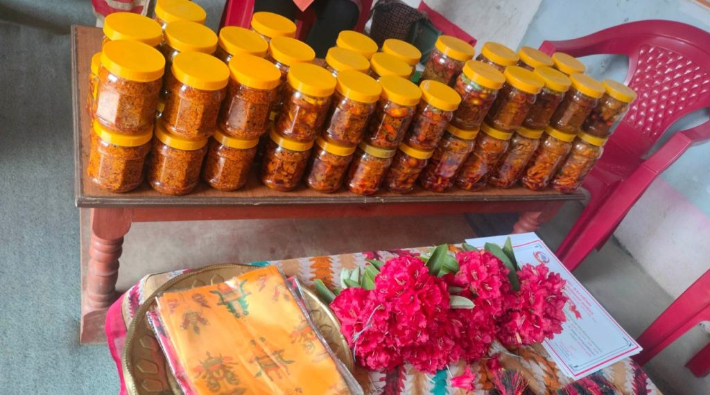 ५ दिनसम्म तालिम लिएपछि तालिमकै बीचमा सिकेका सीपकाे प्रयाेग गरेर महिलाहरुले बनाएकाे अचार अगाडि चाङ लगाएर राखिएकाे थियाे । मेथी, मूला, गाँजर, अमला लगायतकाे छुट्टाछुट्टै र मिक्स अचार प्लास्टिककाे बट्टामा प्रष्टै देखिन्थ्यो । तालिममा के सिकियाे भन्नेबारे साेध्नै नपर्नेगरी अगाडि नै परिणाम देख्दा उपप्रमुख भरत गाेपाली जति दंग थिए, अचार बनाउने एकजना पुरुषसहित ७ जना महिलाहरु उत्तिकै खुशी थिए ।