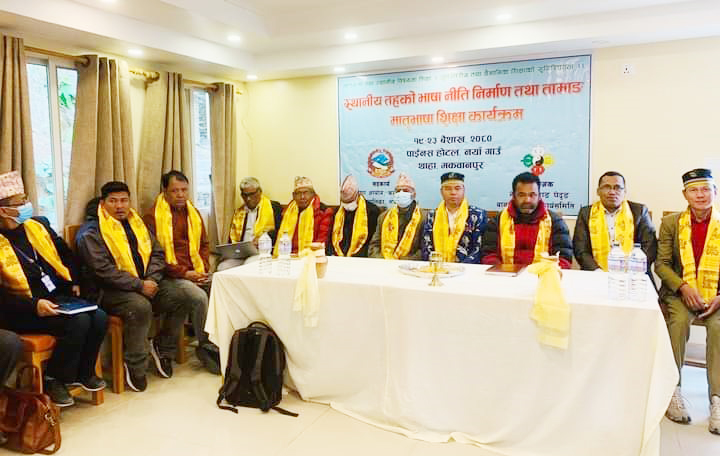 नेपालमा मातृभाषामा शिक्षा कार्यक्रम वि. सं २०५५ देखि सुरू भएको हो। यसका लागि पाठ्यक्रम विकास केन्द्रले २४ वटा मातृभाषामा प्राथमिक तहसम्मको पाठ्यपुस्तक तयार गरेको छ। थाहा नगरपालिका भित्रका छनोटमा परेका विद्यालयमार्फत एक–एक जना शिक्षक लगाएतको कार्यक्रमममा सहभागिता छ । प्रशिक्षकमा माृभाषाका भाषा विज्ञ डाक्टर लोक बहादुर लोप्चन, भाषा आयोगका पुर्व अध्यक्ष लवदेव अवस्थी र नेपाल तामाङ घेदुङ संघका महासचिव काजिमान थिङ तामाङ लगायतका प्रशिक्षकहरुले प्रशिक्षण दिनेछन् ।