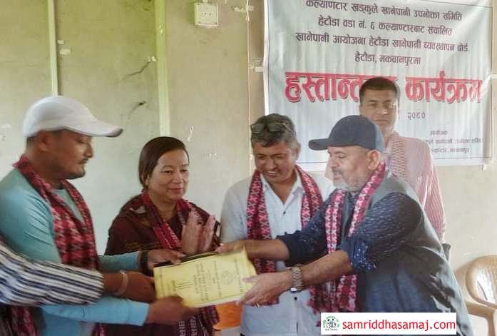 हेटौंडा उपमहानगरपालिका वडा नम्बर ६ मा रहेको कल्याणटार खड्कुले खानेपानी उपभोक्त समिति हेटौंडा खानेपानी व्यवस्थापन बोर्डलाई हस्तान्तरण गरिएको छ । एक कार्यक्रमको आयोजना गरी उपभोक्ता समितिले बोर्डलाई खानेपानी समितिको फाइल हस्तान्तरण गरेको हो । कल्याणटार खानेपानी उपभोक्त समितिबाट १ सय ७ धारा हेटौंडा खानेपानी बोर्डमा हस्तान्तरण भएकोे छ । हस्तान्तरण कार्यक्रममा हेटौंडा उपमहानगरपालिकाका मेयर मीनाकुमारी लामाको प्रमुख आतिथ्य तथा खानेपानी उपभोक्ता समितिका अध्यक्ष विश्वराज राईको सभाअध्यक्षता रहेको थियो । कार्यक्रममा खानेपानी बोर्डका अध्यक्ष प्रताप विष्ट, हटौंडा–६ का वडा अध्यक्ष विष्णुबहादुर दाहाल, वडा सदस्य विजय पौडेललगायतको उपस्थिति रहेको थियो ।