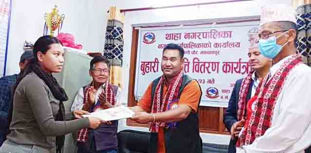 थाहा नगरपालिका वडा नम्बर ४ को कार्यालयले बुहारी छात्रवृत्ति वितरण गरिएको छ । वडा कार्यालको वार्षिक स्वीकृत कार्यक्रम अनुसार विवाहित महिलालाई उच्च शिक्षा अध्ययन गर्न सहयोग गर्ने उद्देश्यले बुहारी छात्रवृत्ति वितरण गरिएको हो ।