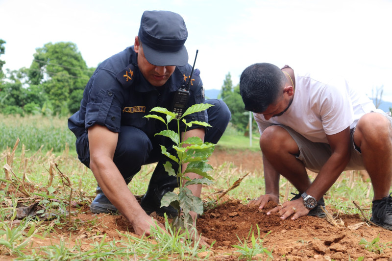 बागमती प्रदेश प्रहरी कार्यालय हेटौंडाका प्रमुख प्रहरी नायब महानिरीक्षक किरण राणा र जिल्ला प्रहरी कार्यालय, मकवानपुरका निमित्त कार्यालय प्रमुख प्रहरी नायब उपरीक्षक टेकबहादुर कार्कीको उपस्थितिमा स्थानीय कृषकले गाँजाको विकल्पमा कफीका बिरुवा रोपेका हुन्।