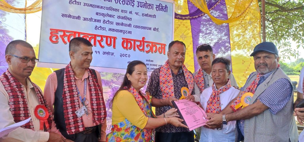 बोर्डमा हस्तान्तरण कार्यक्रममा हेटौंडा उपमहानगरपालिकाका प्रमुख मीनाकुमारी लामाले नगरवासीलाई पानीको सुबिधाबाट बञ्चित नगराउने उद्देश्य अनुरुप काम भैरहेको बताइन् । सरकार भएको अनुभुति दिलाउँदै नागरिकलाई दायित्व बोध गराउदै जिम्मेवारी दिने तयारी अनुसार अघि बढीरहेको उनको भनाई थियो । नगरवासीले धारामा आएको पानी सोझै प्रयोग गर्ने वातावरण बनाउने तयारीमा रहेको भन्दै उनले खानेपानीको उचित व्यवस्थापनसँगै आर्थिक रुपमा कम्जोर भएपनि बिकासको काममा जोड दिदै अघि बढेको बताइन् ।