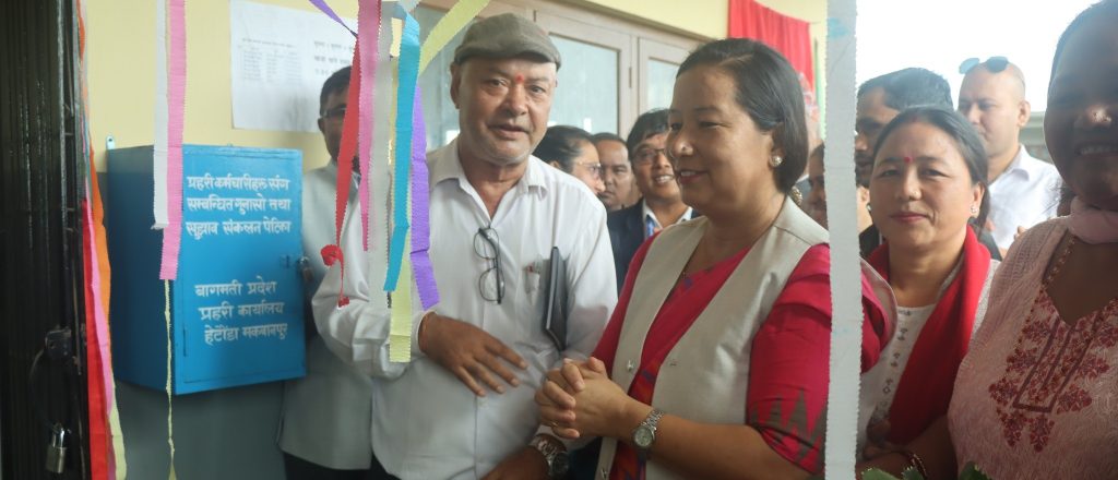 भाडाको घरमा रहेर जनतालाई सेवा दिँदै आएको १२ नम्बर वडा कार्यालय आफ्नै भवनमा सरेको छ । हेटौंडा उपमहानगरपालिकाले एक बर्ष अघि ठेक्का मार्फत निर्माण थालेको भवनको बिहीवार उद्घाटन गरेसँगै वडा कार्यालयले आफ्नै भवनबाट सेवा सुरु गरेको हो ।