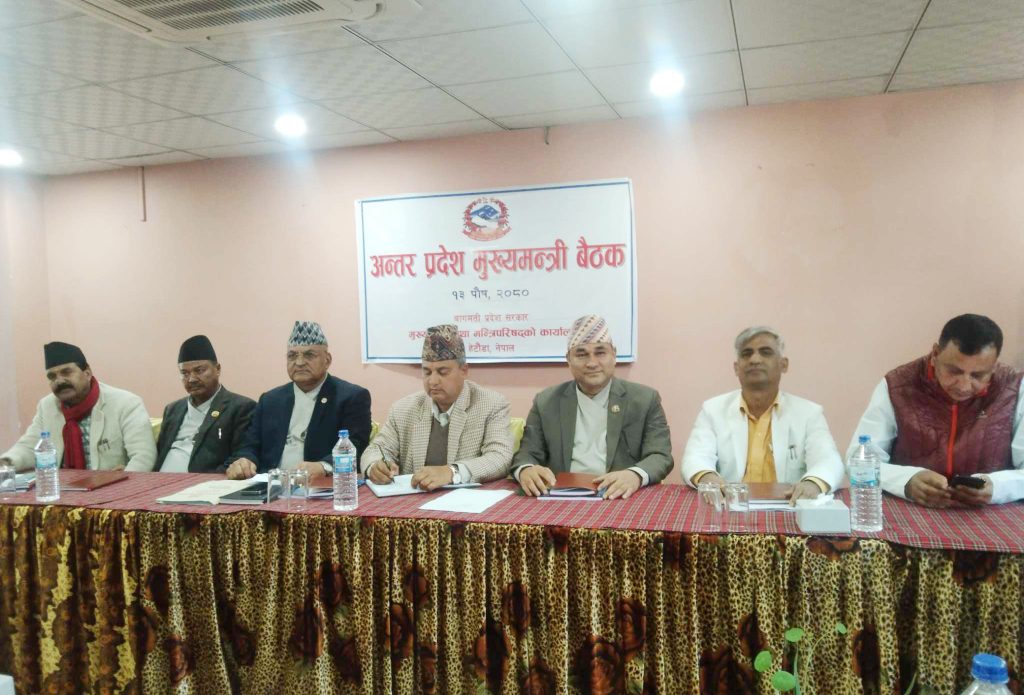 बागमती प्रदेशको राजधानी हेटौँडामा सातै प्रदेशका मुख्यमन्त्रीहरुको बैठक नौ बुँदे निर्णय गर्दै सकिएको छ । १३ पुसमा भएको बैठकले प्रदेश र स्थानीय तहलाई अधिकार प्रत्यायोजन नगरेर संघ सरकारले संघियतालाई समस्या पारेको मुख्यमन्त्रीहरुले निष्कर्ष निकालेका छन् ।