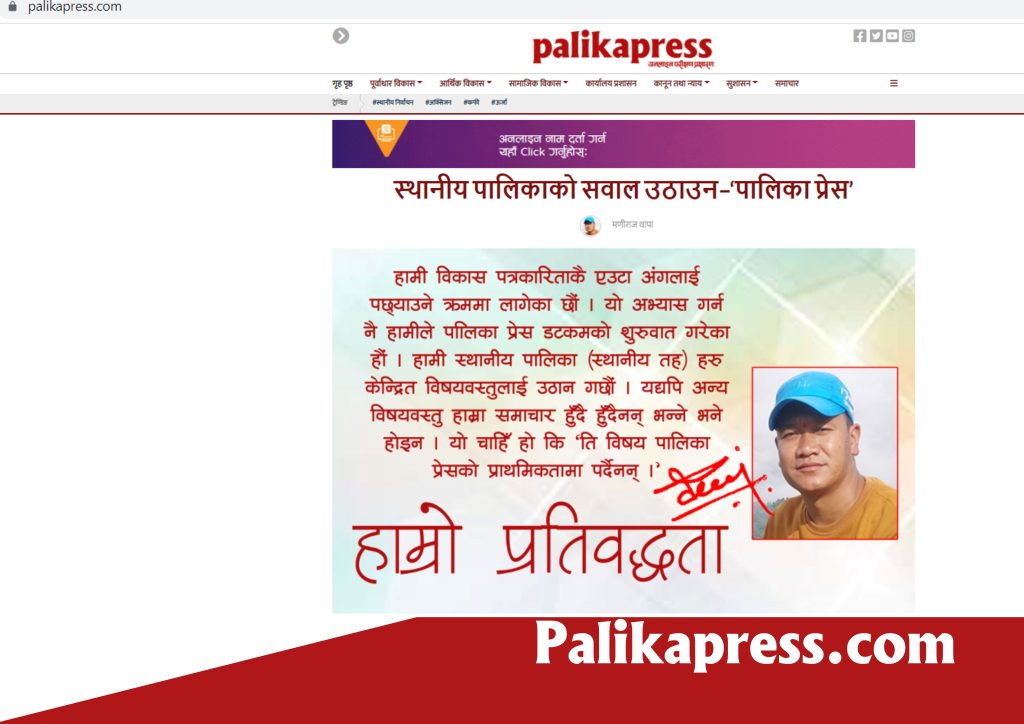 अनलाइनहरुको भिडमा पालिका प्रेसलाई छुट्टै पहिचानसहित पाठकहरु समक्ष पु¥याउने सम्पादक थापाले प्रतिवद्धता जनाएका छन् ।