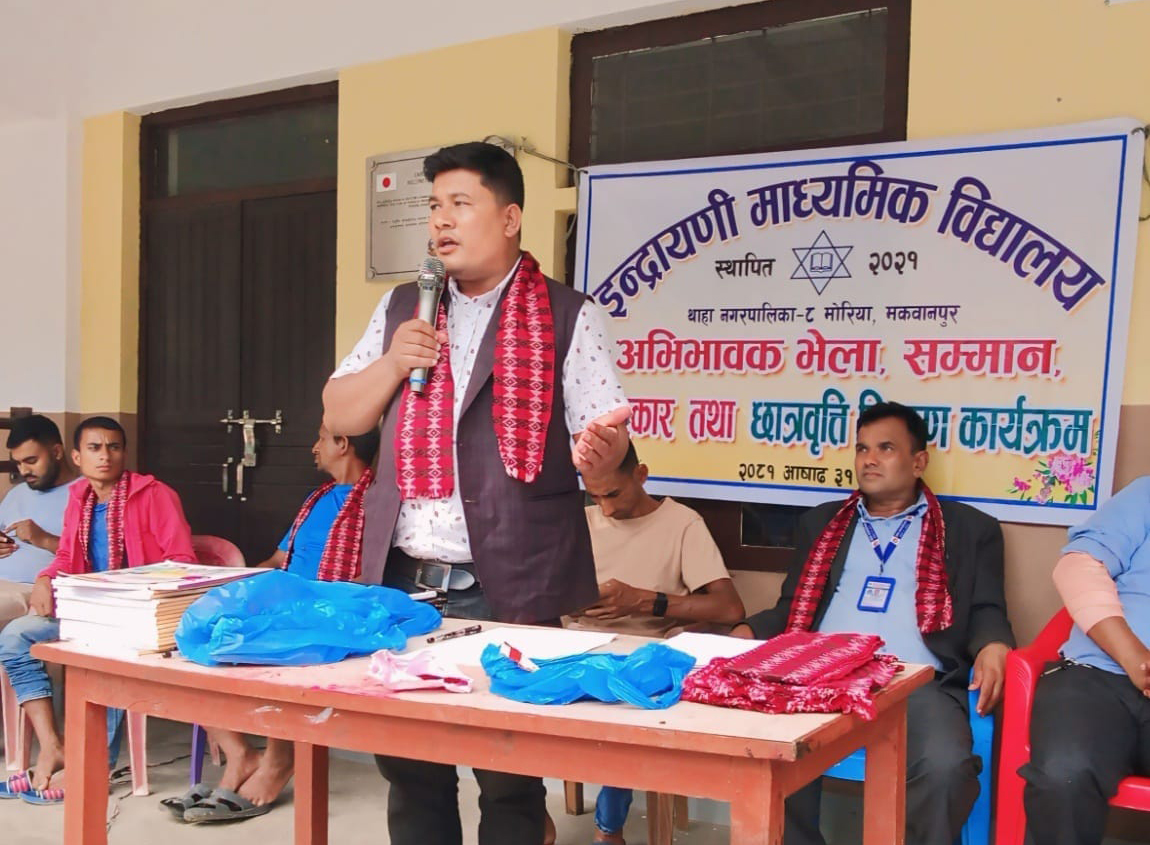 मकवानपुर थाहा नगरपालिका वडा नम्बर ८ को इन्द्रायणी माध्यमिक विद्यालयको अभिभावक भेला भएको छ । विद्यादय व्यवस्थापन समितिका अध्यक्ष हेम कुमार थिङको अध्यक्षतामा ३१ असारमा भएको भेलामा गत शैक्षिक सत्रको आयव्यय प्रस्तुत गरिएको थियो ।