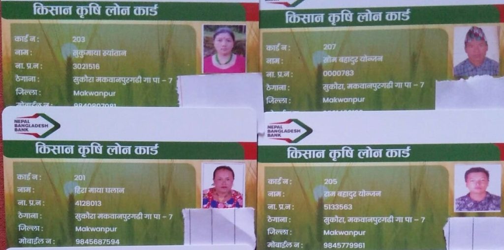 उनका अनुसार सहकारीमार्फत् वैंकले किसानहरुलाई ऋण उपलब्ध गराउँदै आएको छ । ‘जुन कार्यका लागि ऋण लिइएको हो । त्यही काम भएको अनुगमनपछि मात्र ऋण प्रवाह हुन्छ । अन्यथा हुँदैन ।’, उनका अनुसार हालसम्म मनकामना दुग्ध उत्पादक सहकारी संस्था मकवानपुरगढी–३, मक्राञ्चुलीमार्फत् ३३ जना किसान, वन तथा काष्टजन्य विविधिकरण सहकारी संस्था मकवानपुरगढी–५ मार्फत १० जना र जनप्रगतिशील दुग्ध उत्पादक सहकारी संस्था मकवानपुरगढी–७, सुकौरा मार्फत ८ जना गरी जम्मा ५१ जना कृषकहरुलाई किसान कृषि लोन कार्ड मार्फत १ करोड २ लाख लगानी भइसकेको छ ।
