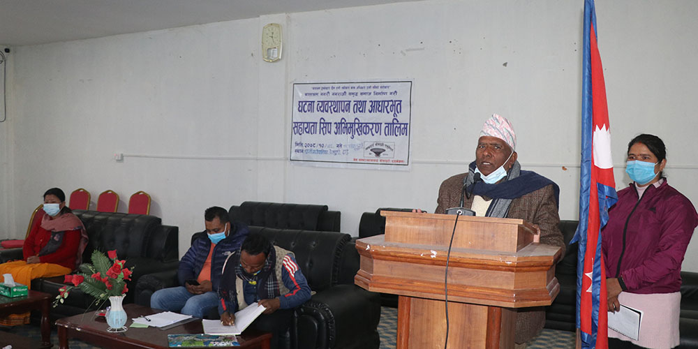 गाउँपालिका अध्यक्ष नुमानन्द सुवेदी, उपाध्यक्ष जगदम्बाकुमारी चौधरी, शिक्षा प्रमुख विश्वास विक उपस्थित कार्यक्रममा घटना व्यवस्थापन तथा आधारभूत सहायता सीपसम्बन्धी तालिम उद्घाटन गरिएको हो । तालिममा जोखिममा परेका तथा सहयोगको आवश्यकता भएका बालबालिका र परिवारको पहिचानपछि तिनलाई आवश्यक सहयोग तथा सेवा प्रत्यक्ष उपलब्ध गराउने र सरोकारवाला निकायमा सिफारिस गर्ने प्रक्रियाबारे जानकारी दिइनेछ । घटना व्यवस्थापनका लागि समन्वय, सहकार्य तथा अभिलेखीकरण गर्नेबारे प्रशिक्षण दिइने बेसका क्षेत्रीय सचिव पटवारी यादवले बताए । तालिममा सहभागीले बाल अधिकार, अवधारणा, विशेष अधिकार, बाल अधिकारसम्बन्धी कानुनी व्यवस्था, बाल अधिकारसम्बन्धी महासन्धिमा भएका व्यवस्था, बाल सहभागिता, बाल संरक्षण, घटना व्यवस्थापन र यसका चरण, विपद् जोखिम तथा व्यवस्थापन, स्थानीय तहमा बाल अधिकार र संरक्षणसम्बन्धी सवाललगायत विषय उठान गरिने संस्थाकी समाज परिचालक चन्द्रकला रोकाको भनाइ छ ।
