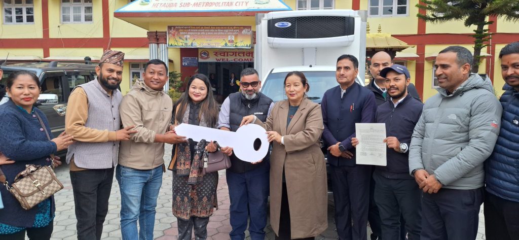 किसानले उत्पादन गरेका सामग्रीलाई सहज ढंगबाट बजारीकरणमा सहयोग पु¥याउने उद्देश्य अनुरुप हेटौंडा उपमहानगरपालिकाले चिस्यान सहितको कृषि एम्बुलेन्स हस्तान्तरण गरेको छ ।