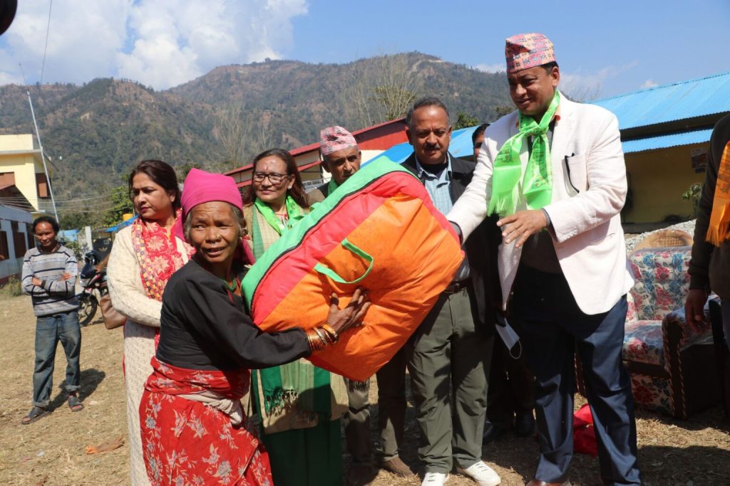 नेपाली कांग्रेस बागमती प्रदेश कार्यसमितिले मकवानपुरको राक्सीराङ गाउँपालिका १, ३ र ५ को टंगरंङ्ग, साझाबंगीम, निगुरेटार, चुरेडाँडा, ईन्द्रुङ, राम्चे, मैनटार डोटेलगायतका टोलका ३ सय चेपाङ तथा तामाङ घरपरिवारलाई न्यानो कपडा कम्वल वितरण गरेको हो ।
