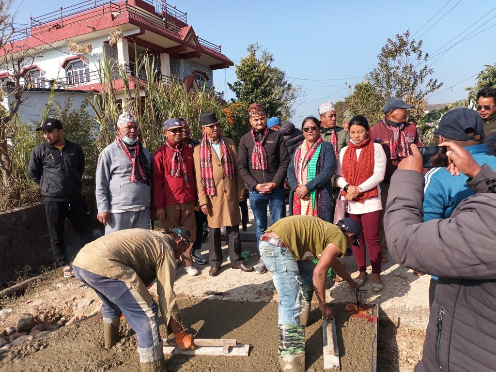 ६ मिटर चौडाई रहेको यस सडक ८ सय मिटर लामो निर्माण हुने छ । सडकको शिलान्यास गर्नै पूर्व मुख्यमन्त्री पौडेलले पहिले एमालेका पालामा भएका विकासका काम गाउँ गाउँ सम्म पुगेको बताउनुभयो । हरेक गाउँमा पक्की सडक, पुल निर्माणका कामले गति लिएपनि अहिलेको सरकारले विकास निर्माणका काम गर्न नसकेको बताए ।