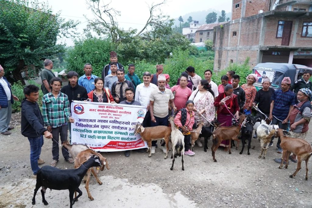 मकवानपुर थाहा नगरपालिकाले अपाङ्गता भएका व्यक्तिहरूको जीविकोपार्जनमा टेवा पु¥याउने उद्देश्यले ३६ जनालाई प्रजनन् योग्य माउ बाख्रा वितरण गरिएको छ । पालिकाले ‘समुदायमा आधारित पुनस्र्थापना सहयोग कार्यक्रम’ अन्तर्गत ‘ग‘ र ‘घ’ वर्गका अपाङ्गता भएका व्यक्तिहरूलाई तालिमसहित बाख्रा वितरण गरेको हो । यस कार्यक्रमलाई थाहा नगरपालिकाको आर्थिक सहयोगमा सञ्चालन गरिएको हो ।
