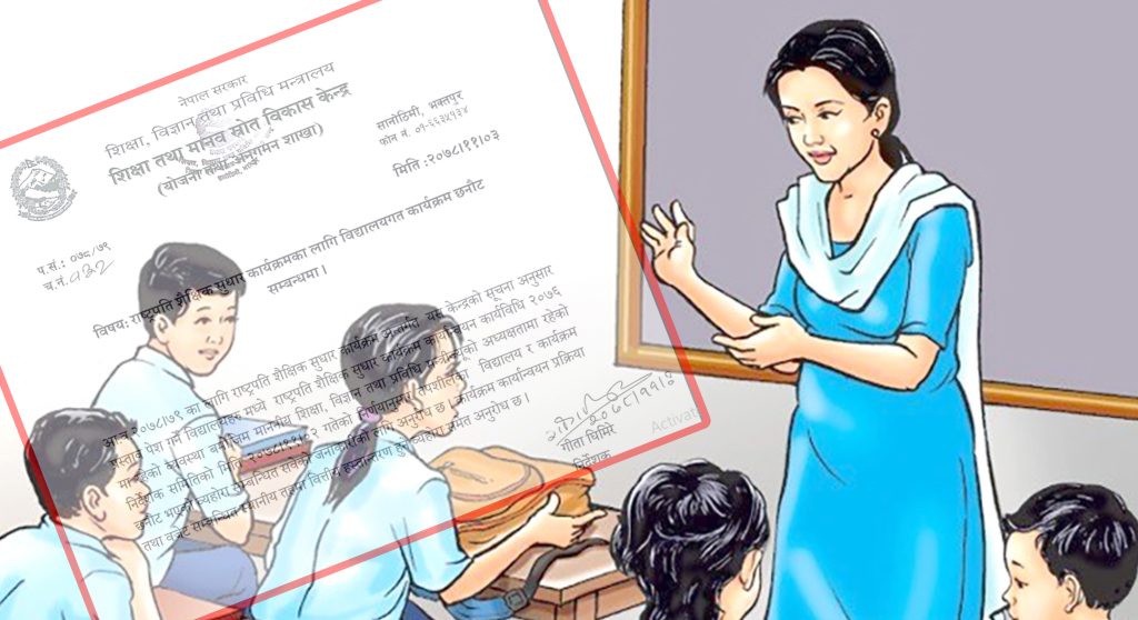 सरकारले राष्ट्रपति शैक्षिक सुधार कार्यक्रमका लागि चालु आर्थिक वर्षमा प्राप्त आवेदनका आधारमा देशभरका चार हजार १५७ सार्वजनिक विद्यालय छनोट गरेको छ । शिक्षा, विज्ञान तथा प्रविधिमन्त्री देवेन्द्र पौडेलको अध्यक्षतामा सोमबार भएको बैठकले सो छनोट गरेको हो । छानिएकामध्ये चारकोठे भवन ९७६, दुईकोठे भवन ९६६, आइसिटी ल्याब व्यवस्थापन दुई हजार १०६, प्राविधिक ल्याब ८८ र नयाँ प्राविधिक विद्यालय स्थापना २१ निर्माण गरिने भएको छ ।