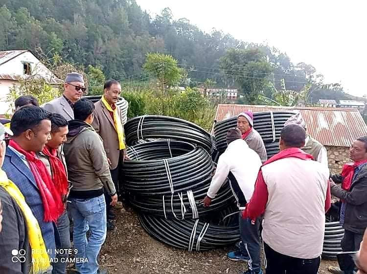 नेपाली कांग्रेस मकवानपुरको सभापति पदका उम्मेदवार जयराम लामिछानेले भीमफेदी गाउँपालिका वडा नम्वर ५ मा खानेपानीको लागि पाइप सहयोग गरेका छन् । मंगलबार उनले १५ सय मिटर खानेपानी पाइप स्थानीयलाई हस्तान्तरण गरेका छन्। ‘खानेपानीको पाइप फुटेर आक्रान्त भएपछि गाउँबासीले पानी खान प¥यो भनेर गुनासो गरे ।’