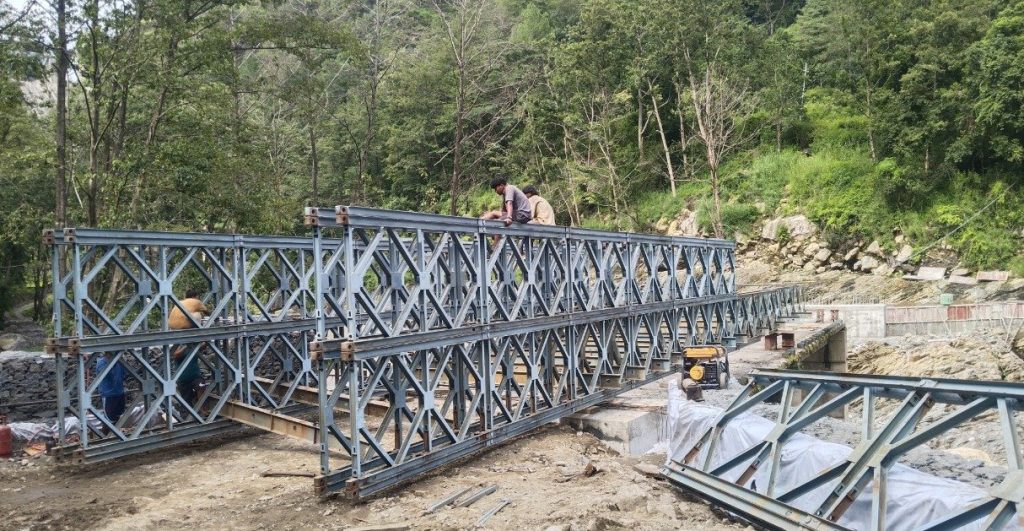 बेलिब्रिज राख्न, पक्की पहुँच मार्ग बनाउन र पुल वरिपरिको क्षतिग्रस्त सडक निर्माण गर्न गौरव इन्जिनियर्स प्रालिले एक करोड ७९ लाख रुपैयाँमा ठेक्का लिएको उनले बताए । उक्त कम्पनीले गत वैशाखदेखि काम थालेको र बढीले क्षति पुगेका स्थानमा पहुँच मार्ग निर्माणका लागि प्लम्प वाल लगाउने, बाँध सहितको मेसिनरी वाल निर्माण, बेलिब्रिजको लागि बेस निर्माण लगायतको काम सम्पन्न गरेको भइसकेको छ ।