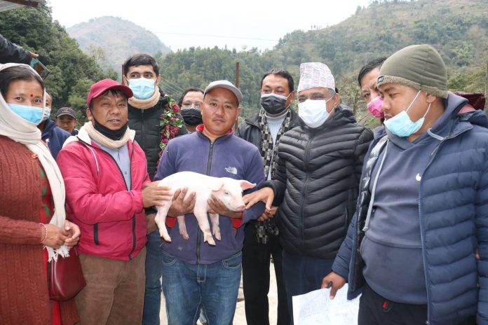 स्याङ्जाको गल्याङ् नगरपालिकामा १ हजार ७ सय वटा बंगुरका पाठापाठी वितरण गरिएको छ ।