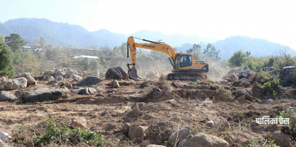 थाहा बसपार्क निर्माण सम्बन्धी कामको प्ररम्भ गरिँदै । फोटोः पालिका प्रेस