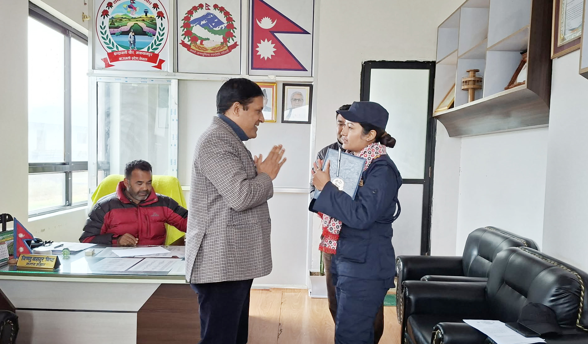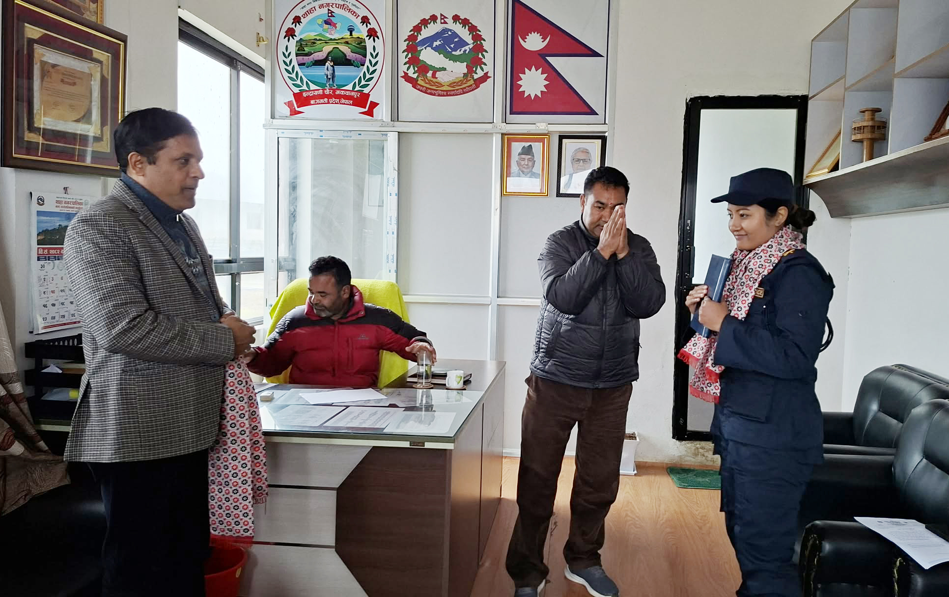 कार्यक्रममा नगर प्रमुख विष्ट, उपपप्रमुख गोपाली, प्रमुख प्रशासकीय अधिकृत पौडेल, प्रशासन महाशाखा प्रमुख नविन खालिङ, आर्थिक प्रशासन शाखा प्रमुख अमर जिसी, सामाजिक विकास शाखा प्रमुख अनिल लामिछाने, सूचना अधिकारी सुजकुमार भुजेल, नगर प्रहरीलगायतकाको उपस्थिती रहेको थियो । बज्राचार्य नेपाल प्रहरी अपराध अनुसन्धान कार्यालय कास्कीबाट सरुवा भई आएकी बज्राचार्य १३ कार्तिका हाजिर भएकी हुन् ।
