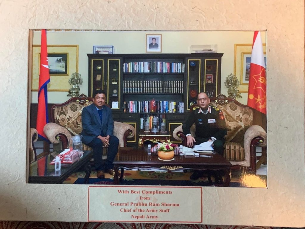 मकवानपुरको भिमफेदी गाउँपालिका अध्यक्ष हिदम लामा र नेपाली सेनाका प्रधान सेनापति प्रभुराम शर्माबीच भेटवार्ता भएको छ । भेटवार्ता नेपाली सेनाको मुख्यालयमा भएको भिमफेदी गाउँपालिकाले जनाएको छ ।