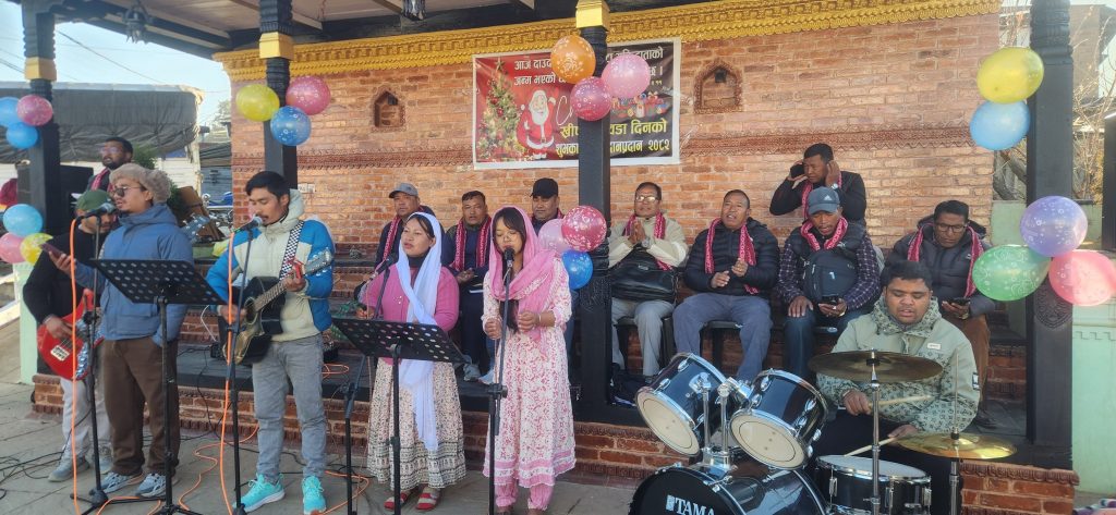 विशिष्ट अतिथि वडा अध्यक्ष हिरेन्द्र कुमार रायमाझीले देशमा आएको आमूल राजनीतिक परिवर्तनपछि नेपाल धर्मनिरपेक्ष राष्ट्र बनेको स्मरण गराउँदै सबै धर्मलाई समान व्यवहार गर्नुपर्नेमा जोड दिनुहुँदै क्रिसमसको शुभकामना व्यक्त गरे ।