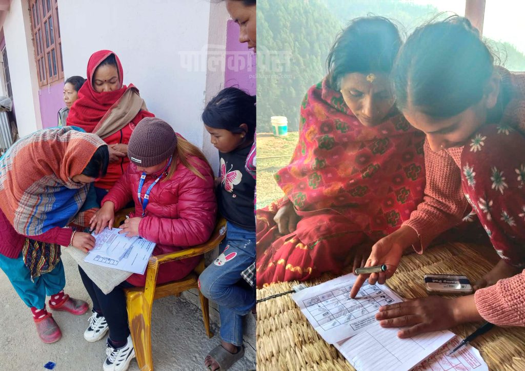 थाहानगरमा मतदाता शिक्षा प्रदान गर्दै स्वयंसेवकहरु ।