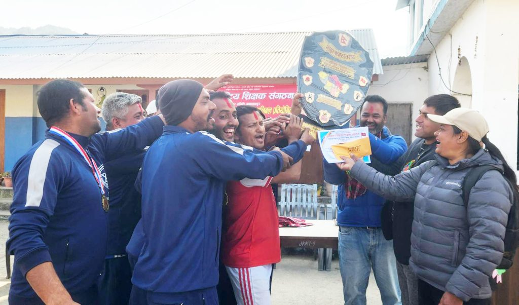 पुरस्कार वितरण कार्यक्रम शिक्षक संगठनका नगर अध्यक्ष मनोज लामिछानेको सभाध्यक्षतामा भएको थियो । प्रतियोगितामा थाहा नगरपालिकाभित्रका १४ वटा विद्यालयका शिक्षकहरुको सहभागिता रहेको थियो। प्रतियोगितामा मत्स्यनारायण माविका साहिल तामाङ उत्कृष्ट खेलाडी घोषित भए भने समीर नापित उत्कृष्ट सेटर र स्वच्छन्द भैरवका पिताम्बर घिमिरे उत्कृष्ट स्पाइकर घोषित भए ।