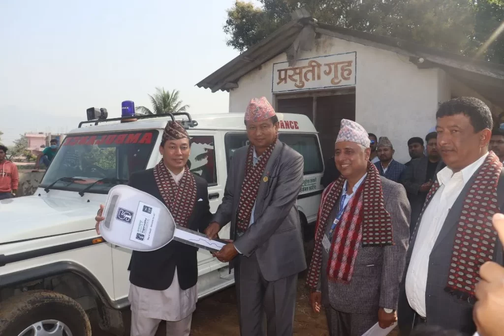 सगरमाथा इन्स्योरेन्सका प्रमुख कार्यकारी अधिकृत चुङ्की क्षेत्रीले त्रियुगा नगरपािलकाका नगर प्रमुख बलदेव चौधरीलाई एम्बुलेन्सको साँचो हस्तान्तरण गरेको हो ।