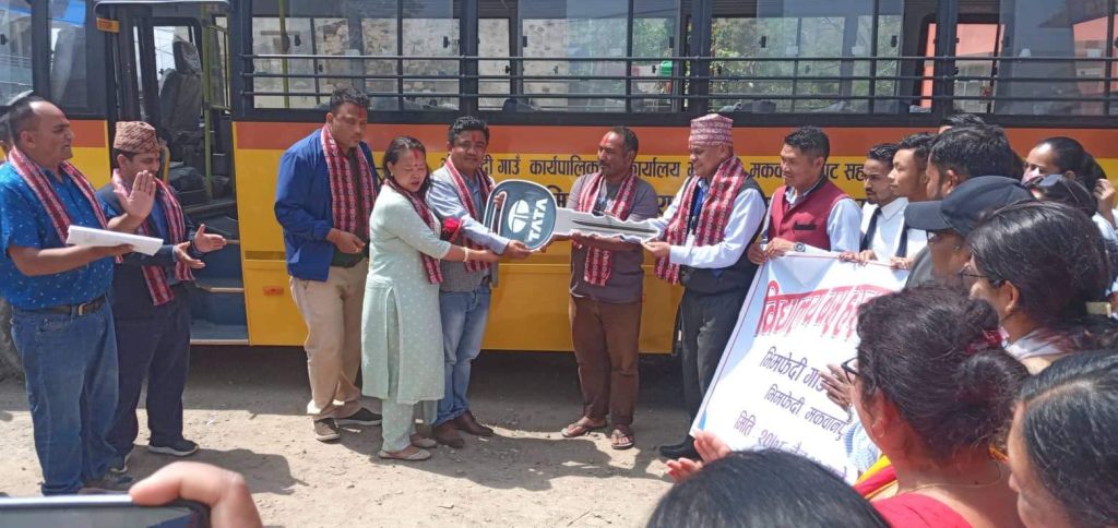 मकवानपुरको भिमफेदी गाउँपालिकाले श्री कृष्ण माध्यमिक विद्यालयलाई ‘स्कूल बस’ हस्तान्तरण गरेको छ । पालिकाको वडा नम्बर २ भैसेमा रहेको उक्त विद्यालयलाई पालिका कार्यालय भिमफेदीमा एक कार्यक्रमको आयोजना गरी ‘स्कूल बस’ हस्तान्तरण गरिएको हो । कार्यक्रममा गाउँपालिका अध्यक्ष हिदम लामाले विद्यालयका प्रधानाध्यापक कृष्णलाल श्रेष्ठलाई बसको चाबी हस्तान्तरण गरेका हुन् ।