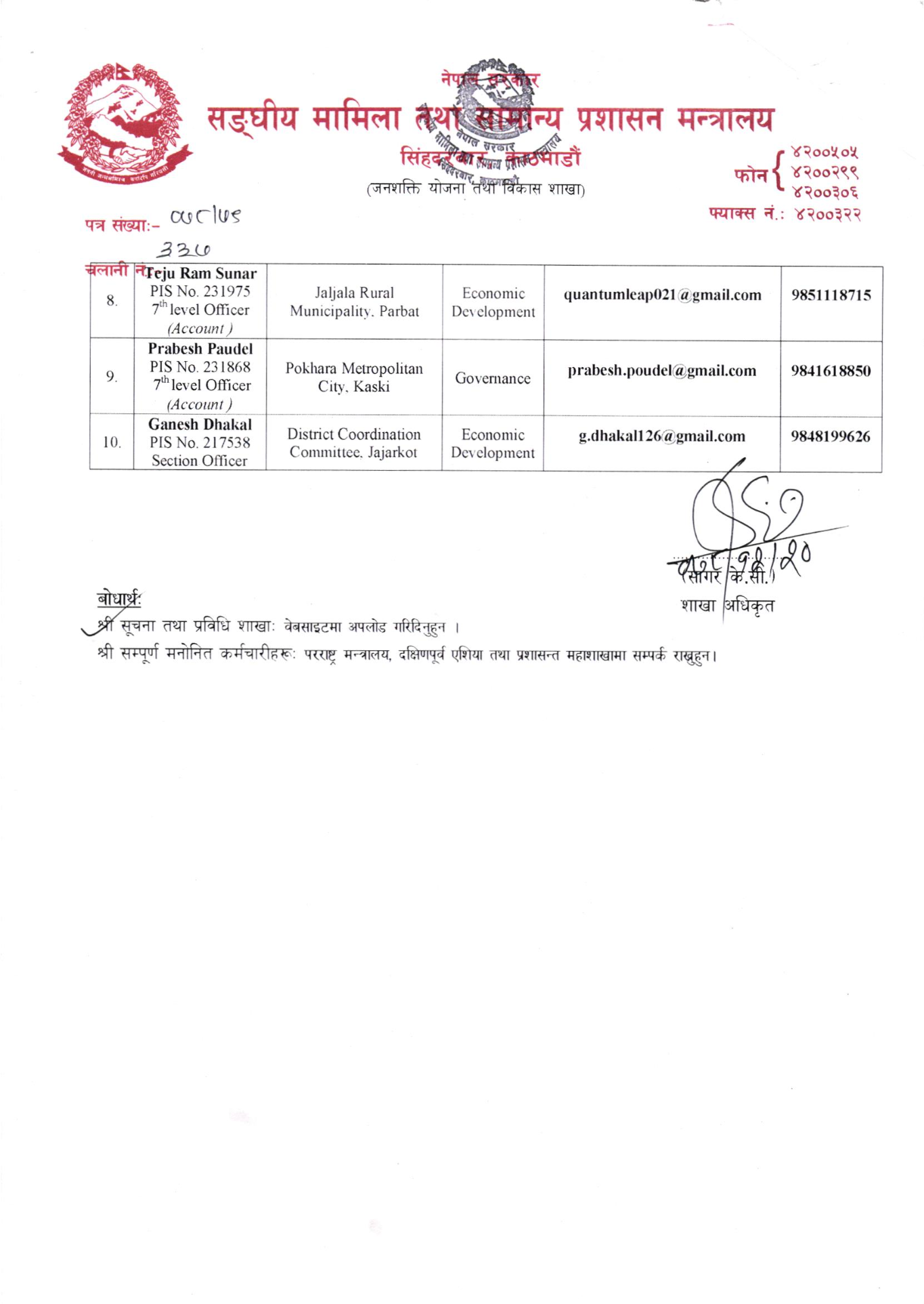 संघीय मामिला तथा सामान्य प्रशासन मन्त्रालयले वैदेशिक अध्ययनका लागि १० जना कर्मचारीहरुलाई मनोनयन गरेको छ ।