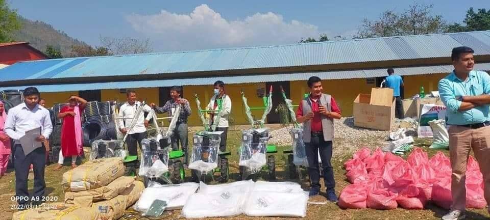 आर्थिक वर्ष २०७८/०७९ को वार्षिक स्वीकृत कार्यक्रम अनुसार पालिका क्षेत्रमा रहेका ७ वटा कृषक समूहलाई ७५ प्रतिशत अनुदानमा मिनटिलर वितरण गरेको कृषि विकास शाखाका किसन डुम्रे ले बताए । सो अवसरमा पालिका क्षेत्रका अगुवा कृषक तथा कृषि फार्मका लागि शत प्रतिशत अनुदानमा बेमौसमी तरकारी खेतीका लागि २६ वटा टनेल प्लाष्टिक र १६ थान प्लाष्टिक पोखरी, मकै चरी घाँसको विऊ वितरण गरिएको डुम्रेले पालिका प्रेसलाई जानकारी दिए ।