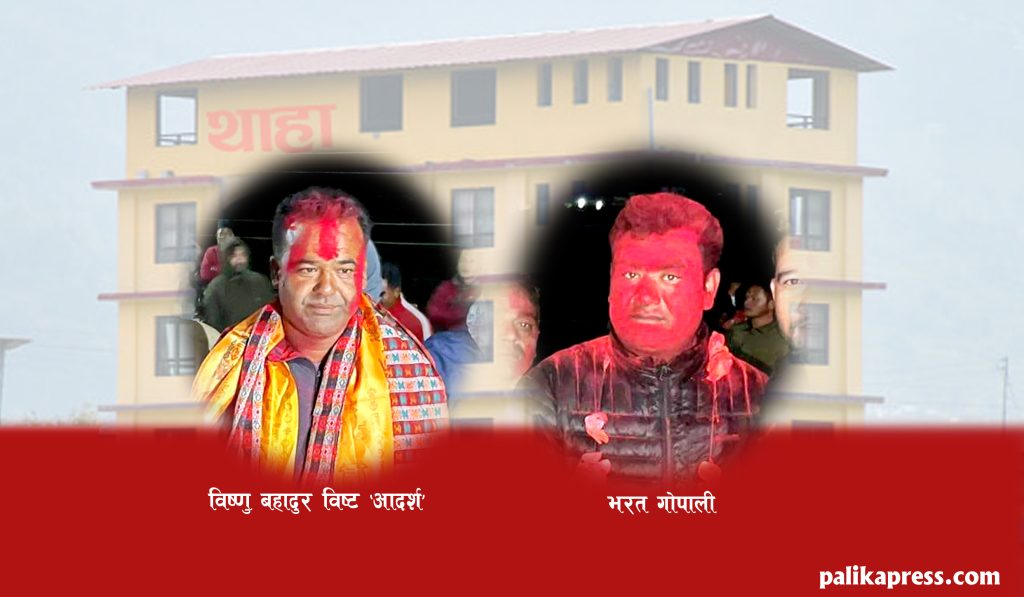 आगामी ५ वर्षका लागि थाहा नगरपालिकाकाे मेयरमा विष्णुबहादुर वि्षट र उपमेयरमा भरत गाेपाली निर्वाचित भएका छन् ।