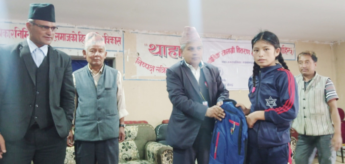 बागमती प्रदेशको आर्थिक सहयोग, अपाङ्ग सरोकार समिति थाहानगरको आयोजनामा कार्यक्रम भएको हो । थाहा नगरपालिका वडा नम्बर ३ का वडा अध्यक्ष हिरेन्द्र रायमाझीको प्रमुख आतिथ्यतामा भएको कार्यक्रममा नगर क्षेत्रका ५१ जना बालबालिकालाई शैक्षिक सामाग्री वितरण गरिएको हो ।