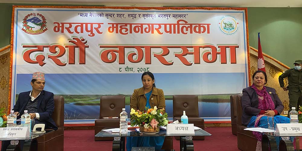 भरतपुर महानगरपालिकाको दशौँ नगरसभा सम्पन्न भएको छ । नगरसभाले ४८ करोड ६० लाख बजेट अनुमोदनसँगै प्रज्ञा प्रतिष्ठान विधेयक पारित गरेको हो ।