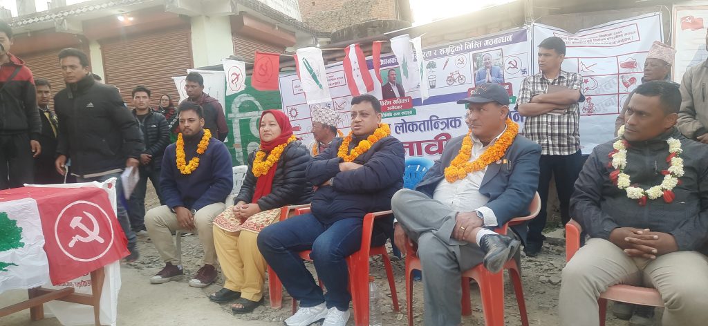 गठबन्धन दलका उमेदवार विरोध खतिवडा र कुमारी मोक्तान सहभागी भएको कार्यक्रममा जनताको गुनासो सुन्दै उनीहरुले गुनासोको समाधानको प्रतिबद्धता व्यक्त गरेका थिए । स्थानीयहरुले फुलमालासहित उमेद्वारको स्वागत गरेका थिए । उमेदवारद्वय खतिवडा र मोक्तानले जित सुनिश्चित भएको बताउदै निर्धक्क भएर गठबन्धनको पक्षमा मतदान गर्न आग्रह गर्दै गठबन्धनको जित भए विकास निर्माणको काममा आफुहरुबाट हुने आश्वासन दिए । अभियानको क्रममा थाहा ११ नौखण्डे बजारमा गठबन्धन दलको वडा चुनाव प्रचारप्रसार कार्यालयको प्रतिनिधिसभा सदस्य पदका उमेदवार बिरोध खतिवडाले उद्घाटन गरे ।