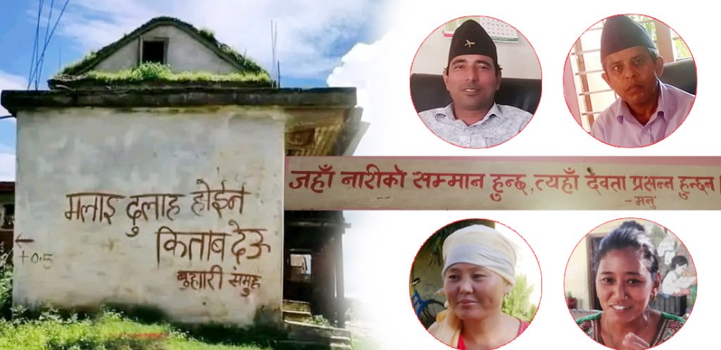 केही महिना अगाडि सामाजिक सञ्जालमा एउटा तस्वीर भाइरल भयो । कुनै गाउँको जस्तो देखिने एक घरको भित्तामा लेखिएका ठूला अक्षरको सन्देश बोकेको तस्वीरले सामाजिक सञ्चालमा धेरै फन्को मार्यो । ‘बुहारी समूह’ को नाममा दिइएको सन्देशमा लेखिएको थियो, ‘मलाई दुलाह होइन किताब देउ ।’