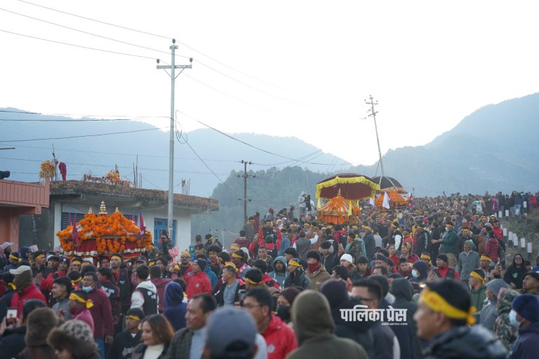 थाहानगरको पालुङ शहरमा इन्द्रजात्राः “भित्र्याइयो नयाँ चलन, भैरबको मुखबाट छ्याङ प्रसाद”